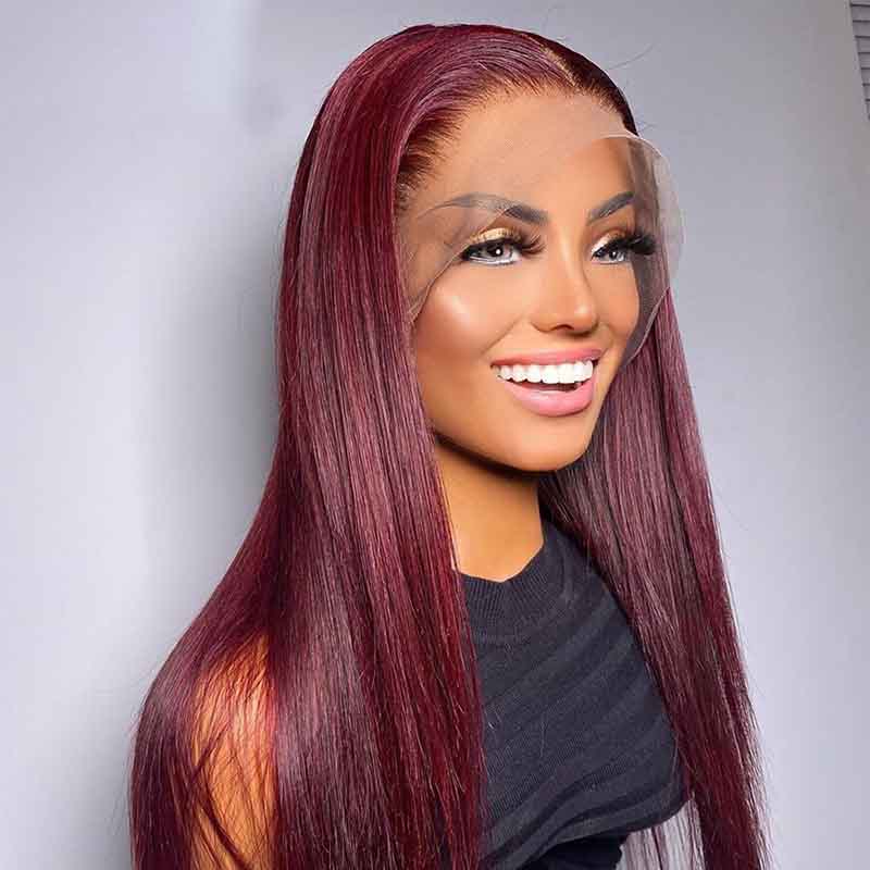 | Item | 360 transparent lace frontal wig 99J Straight Wig |